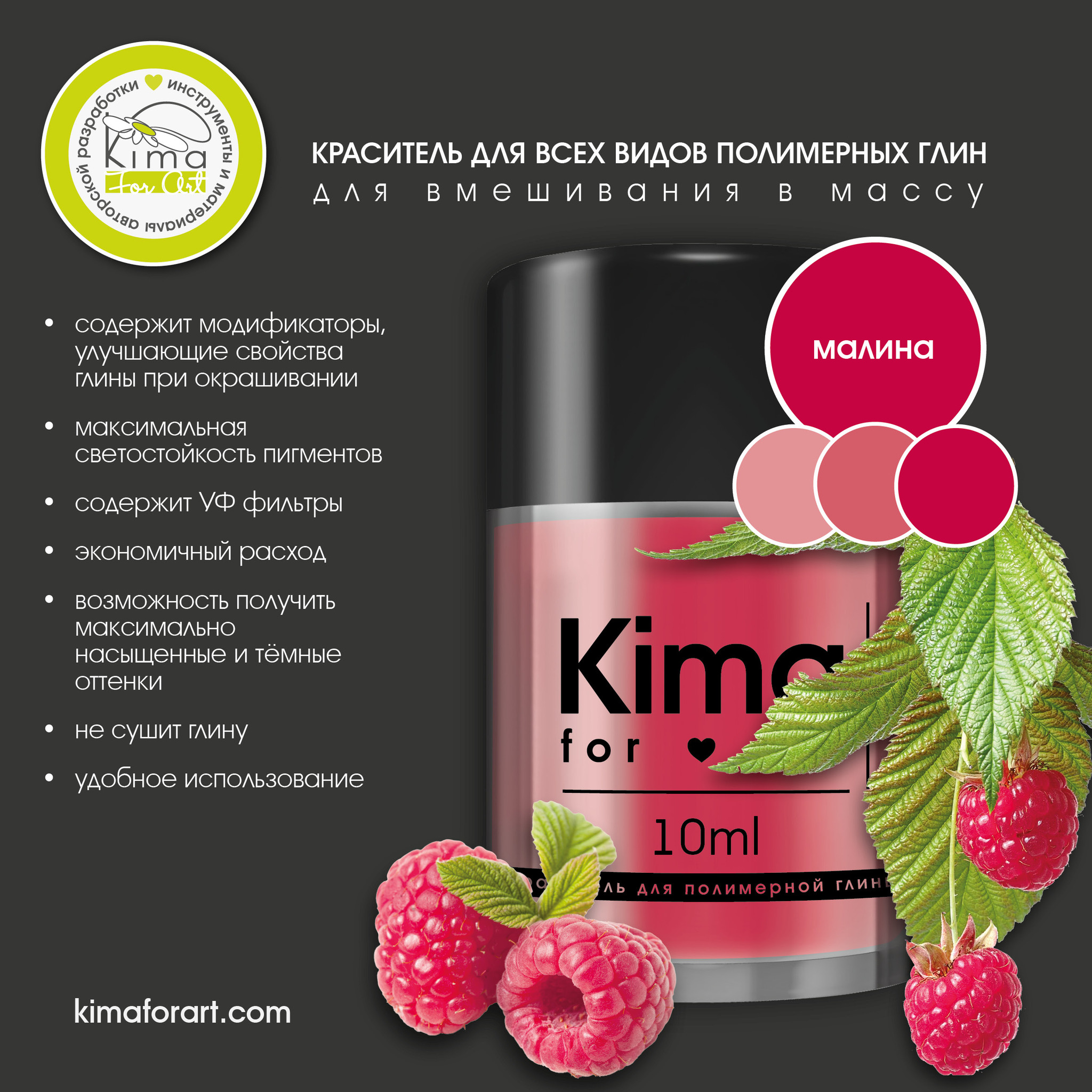 Красители KimaForArt® можно вмешивать в любые полимерные глины: самозастывающие, холодный фарфор и запекаемые.