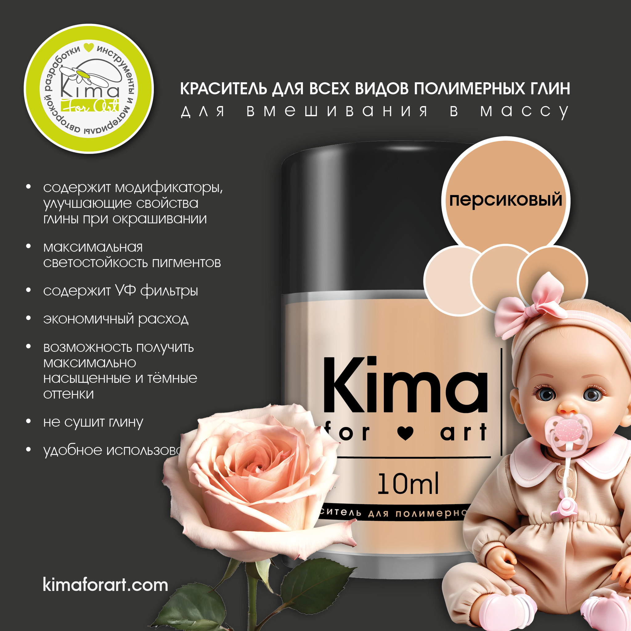 Красители KimaForArt® можно вмешивать в любые полимерные глины: самозастывающие, холодный фарфор и запекаемые.