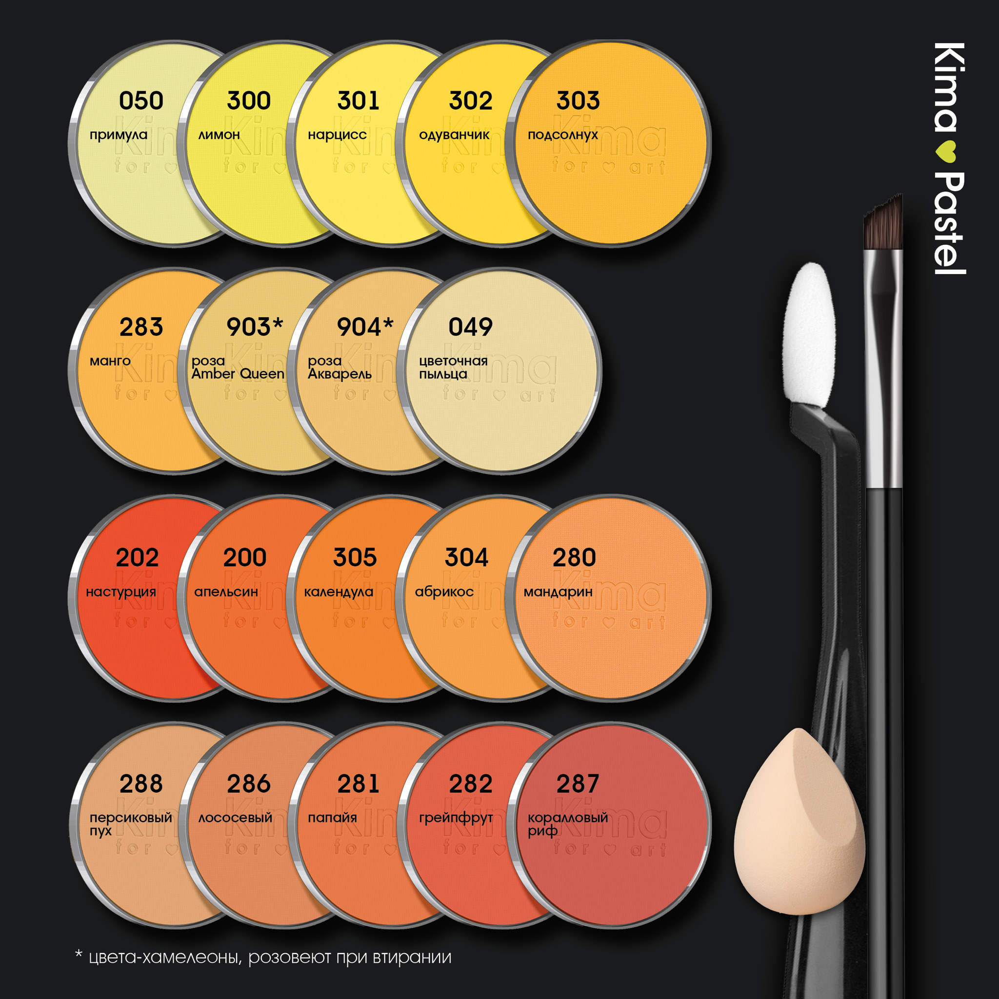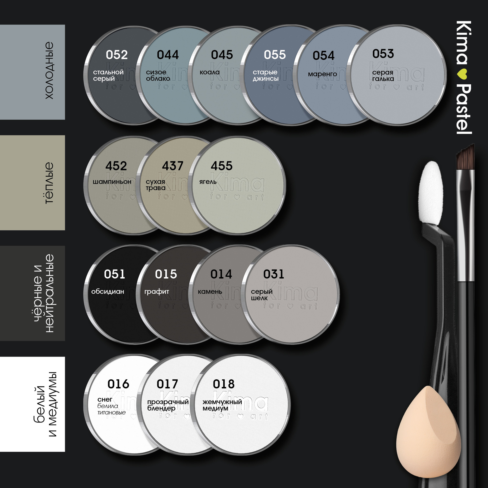 Kima Pastel – ультрамягкая художественная пастель премиального качества. Мы разработали собственный рецепт пастели для нанесения кистью и спонжем. Она наносится безупречно равномерно и легко, буквально сливается воедино с поверхностью.